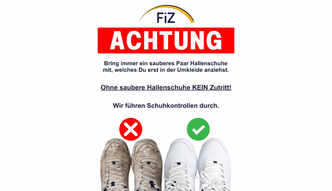 wir möchten Euch daran erinnern, IMMER ein sauberes Paar Hallenschuhe mitzubringen und diese erst in der Umkleidekabine anzuziehen. 👟